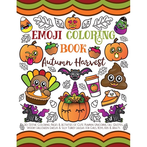Emoji Coloring Book Autumn Harvest 30 Festive Coloring Pages Activities Of Cute Pumpkin Unicorns Fall Quotes Spooky Halloween Emojis Silly Turkey Laughs For Girls Boys Kids Adults Paperback